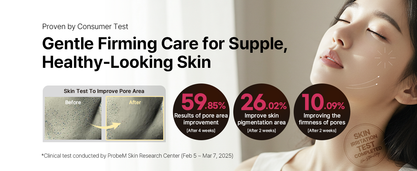 Formulated with 'Cica PDRN Capsules,' a low-irritation firming ingredient extracted from Centella Asiatica, and 'Vita 5X Complex,' containing five essential vitamins, it restores elasticity to enlarged pores and helps achieve healthy skin.